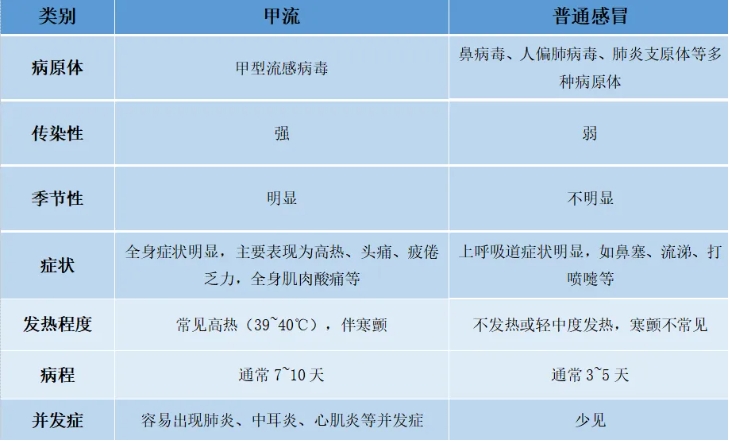 与普通感冒相比,甲流在传染性、季节性、症状以及病程等方面存在显著差异。甲流传染性更强,季节性更明显,全身症状明显,常伴有高热、头痛、疲倦乏力等症状。而普通感冒主要是上呼吸道症状明显,如鼻塞、流涕、打喷嚏等,发热程度较轻,病程也相对较短。